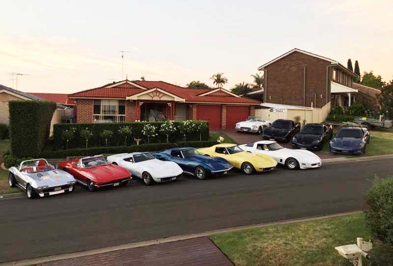 Peter's Corvettes - Membership # 573 From my earliest days of having a licence, my car of choice has always been a Chevy. My first sighting of a corvette was a white C3 chrome bumper body for sale on Elizabeth Drive opposite Smithfield Rd. There was a for sale sign on the windscreen for ten thousand dollars but it had no motor and gearbox. Though I can't remember how old I was at the time, early teens I think, I have never forgotten it. It has be around forty years until I got to own my first corvette, a white 1982 C3. A year later I got my second corvette, a white 1968 chrome bumper. Finally tracking down a good corvette mechanic in Ron Missen, I got to meet Ray Smith and it was he who convinced me to attend one of the club meetings. I never saw myself as club type person but thought I may as well check it out. Moni and I attended our first meeting at the end of 2014 and joined the club, and as the saying goes, the rest is history. Joining the club however exposed me to all the corvette generations and unknowingly, a dormant disease was woken. Starting with the first C3 multiplying two 2xC3, metastasizing into a C5 and spreading to a C6. Both of us thought we had caught it in time, but alas the C3 had multiplied into 4xC3. There was no stopping it now and within a 21 month period it had developed into a C2 and a C1. The C2 then replicated into a GS and it all finally culminated into a Zo6 C6. The snake had a head. Miraculously a cure was found, a combination of maintenance and repair costs and or a divorce. I still get an itch occasionally, but a strong wife and rolling pin has kept the disease at bay. My vettes from left to right are as follows; 1963 Silver C2 Grand Sport Replica, 1965 Rally Red C2, 1968 Polar White C3, 1970 Bridgehampton Blue C3, 1970 Daytona Yellow C3, 1982 White C3, 1961 Ermine White & Silver C1, 2001 Black C5, 2005 Black C6, 2011 Sonic Blue Zo6 C6 Carbon. Owning ten corvettes is not recommended but having a corvette is for the young at heart, We've had the pleasure of meeting and sharing good times and outings with great people in our club and we hope for it to continue for many years to come. Pete & Moni |
