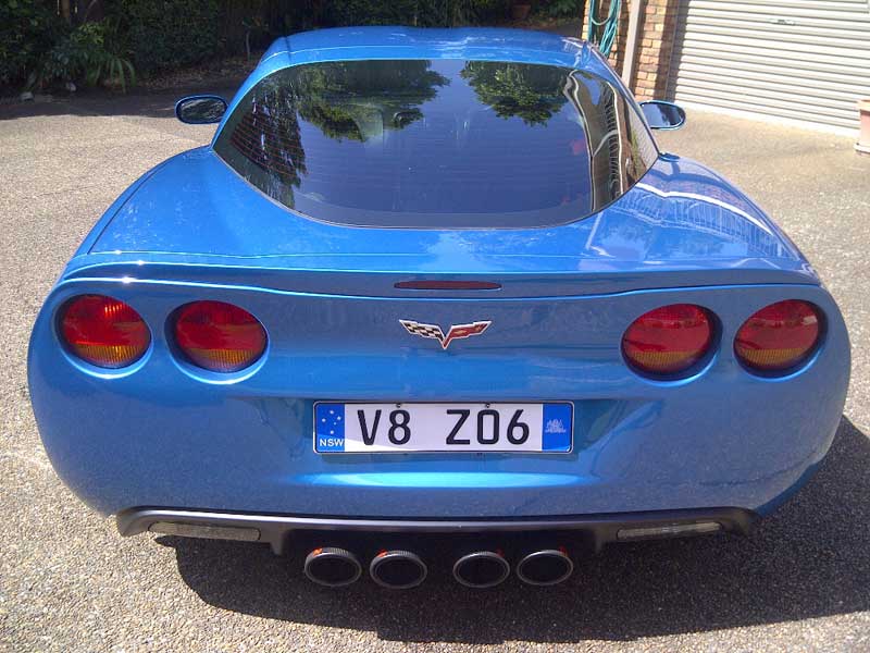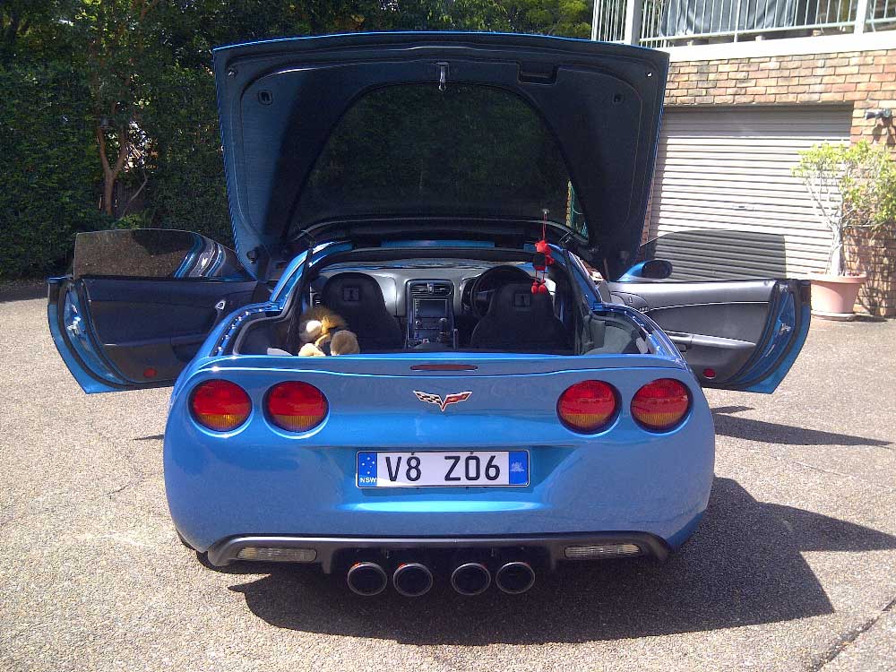 After owning a Camaro Z28 and a HSV Clubsport R8 in the UK and now owning a HSV Manta, Lynne and I decided we wanted a 2 seater sports car and the Vette soon became the car of choice. Lynne wanted a C6 and I said "if it's a Vette it's a 427!!" After quite a bit of research and money saving we found the car on the internet at a Chevy dealer in Florida around July 2011. The car is a 2008 Corvette C6 Z06 in Jet Stream Blue with a 2LZ trim specification. The car had one owner, only had 6,000 miles and had the trim I was looking for which included chrome wheels, two tone leather interior, touch screen radio with Bose 7 speaker system and rear GM factory fitted spoiler. Photos of the car looked great. The price was about $4k US less than anything else on the market and with the exchange rate at the highest it ever got I rang the dealer asked for a few more $'s off and did the deal. The car was transported to Long Beach port then shipped to Brisbane arriving October 2011 and on to Performax for conversion. Conversion started January 2012 and we collected the car in March 2012 for a very pleasant drive home. Referencing the original title document I wrote to the original owner who replied advising the car had a MGW short shifter and a Haltech cold air intake and beehive. The previous owner was very nice advising he had treated the car very well and was an awesome machine. I've done a few minor mods including stainless steel screws, LED lighting, leather centre console and Akrapovic titanium exhaust with 125mm carbon fibre tips. The exhaust is rather special so beautifully manufactured and the whole system is about the same weight as one of the original mufflers (website claims 15kg lighter than stock system!!!). The Z06 is a spectacular machine with quite a few weight saving items like magnesium engine frame and roof frame, carbon fibre front end and balsa wood sandwich floor!! The 505hp small block LS7 is an awesome engine which sling shots the car into action. Lynne and I love cruising around and are looking forward to more NSW CC events - see you there. |