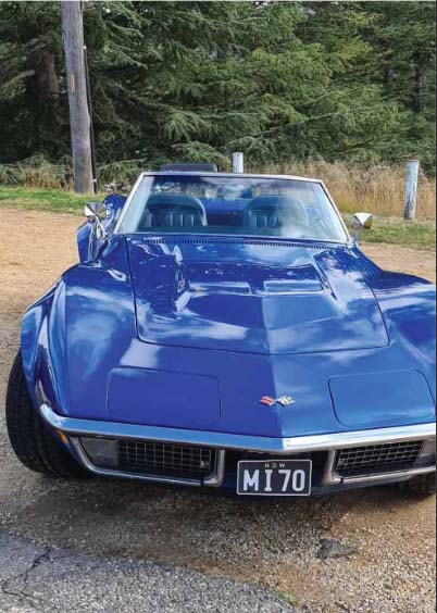 As with all Corvettes she does have a story to tell. This year two months ago on the 20th May, 1970 she rolled off the production line at Bowling Green Kentucky, so she is officially 50 years old. I don’t have much history from the States but it was brought over by GM Down Under in 2009 and sent out for auction at Shannons with a reserve of $80,000.00. There was an article in the Sydney Morning Herald referring to it. A Doctor in Edgecliff bought it - not sure of price, but didn’t like it as it was too noisy to drive and he didn’t enjoy it, so it stayed in storage till Dec 2013 when I purchased her. Funny I was after a later model 1992 but when I saw and heard her I was hooked. She was a bit rough around the edges and had over-heating issues so much so that on our runs, Georgie and I went to Palm beach for a run and lunch, just sat down and someone came over and said your car is on fire. It was a split radiator and it was spraying onto block causing steam to come out of the bonnet looking like it was on fire. Since then I’ve replaced the motor, gave me nothing but grief at every club run fi nished with us limping her home and was not enjoyable. I have slowly fixed all the things that need doing so today the almost fi nished product is what you see. It’s a bit like my match box toy as a kid I never had, flared guards big wheels shiny new paint job, side pipes and roadster to boot. She is not finished and needs some cosmetics done but she is as strong as an ox and goes hard when asked as long as there are plenty of fuel stations along the way. She is affectingly referred to as the Thumper! I love her, Georgie does too, except after a long run on a highway for hours (Port Macquarie); she has a great sound system but we have never heard it due to side pipes but hey that’s the mystic of the Vette. |